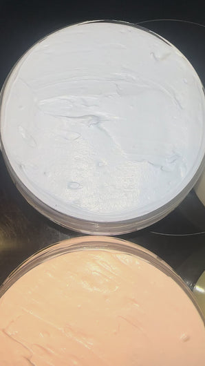 Composition : beurre de karité désodorisé, beurre de mangue, beurre de cacao, huiles de coco et amande douce, collagène, allantoïne, vitamines E et C, Kojic dipalmitate pour la formule éclaircissante.